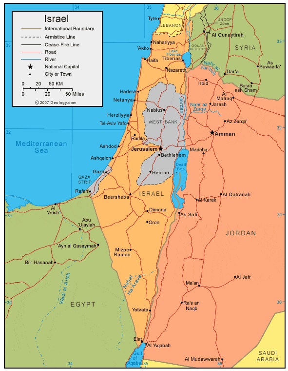 Land area: 21,640 Km2 (8,355 sq. miles). Capital: Jerusalem