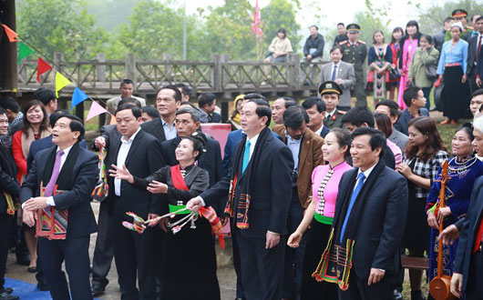 President Tran Dai Quang attended an opening ceremony of the “Spring in all Regions Nationwide” Festival 2017 at the Vietnam National Village for Ethnic Culture and Tourism in Hanoi on February 4.