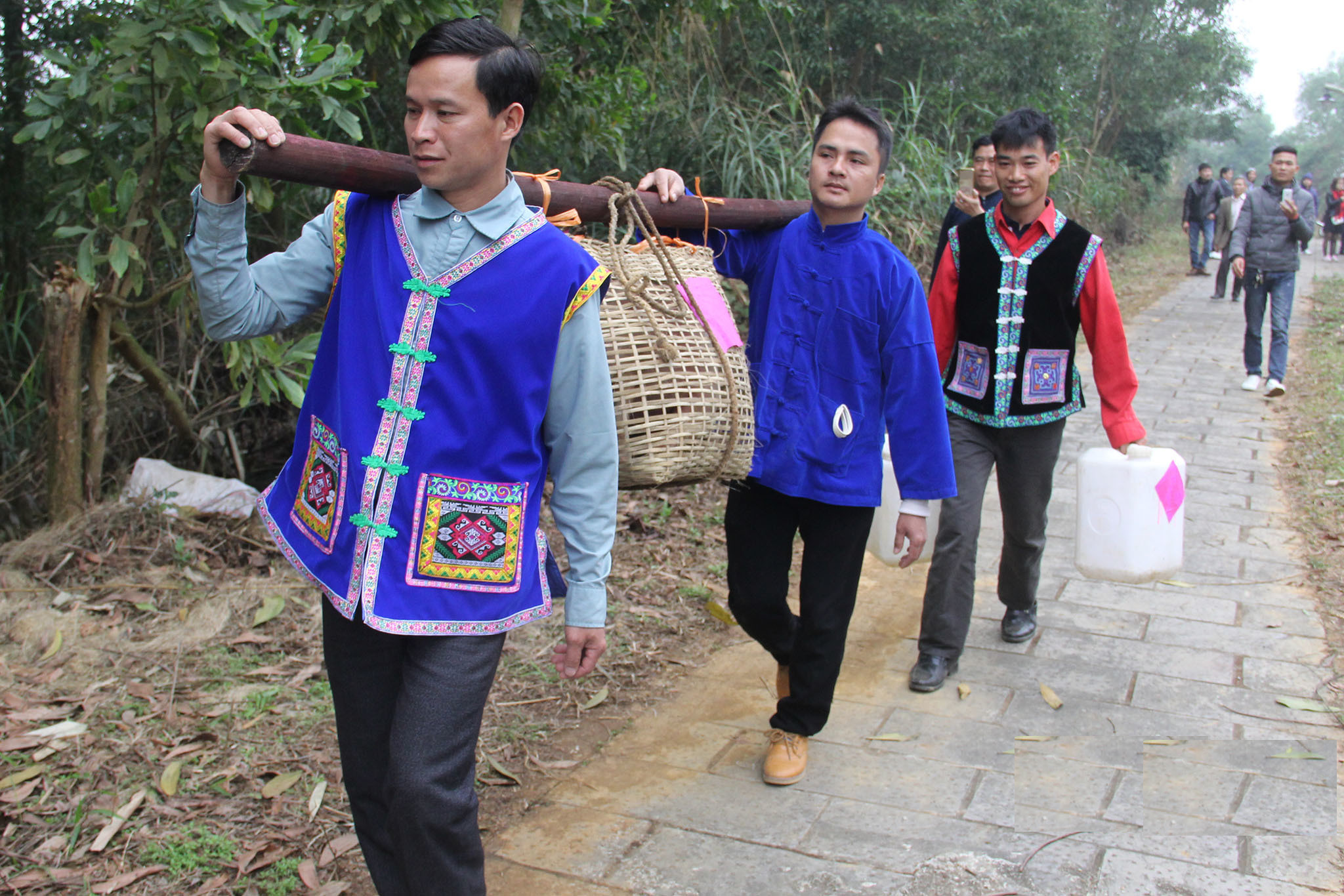 Lễ cưới của họ khá phức tạp và tốn kém. Trong lễ đón dâu thường nhà trai chỉ có khoảng 8 đến 10 người, trong đó phải có 1 đến 2 đôi son trẻ, 2 đôi đã có vợ có chồng.
