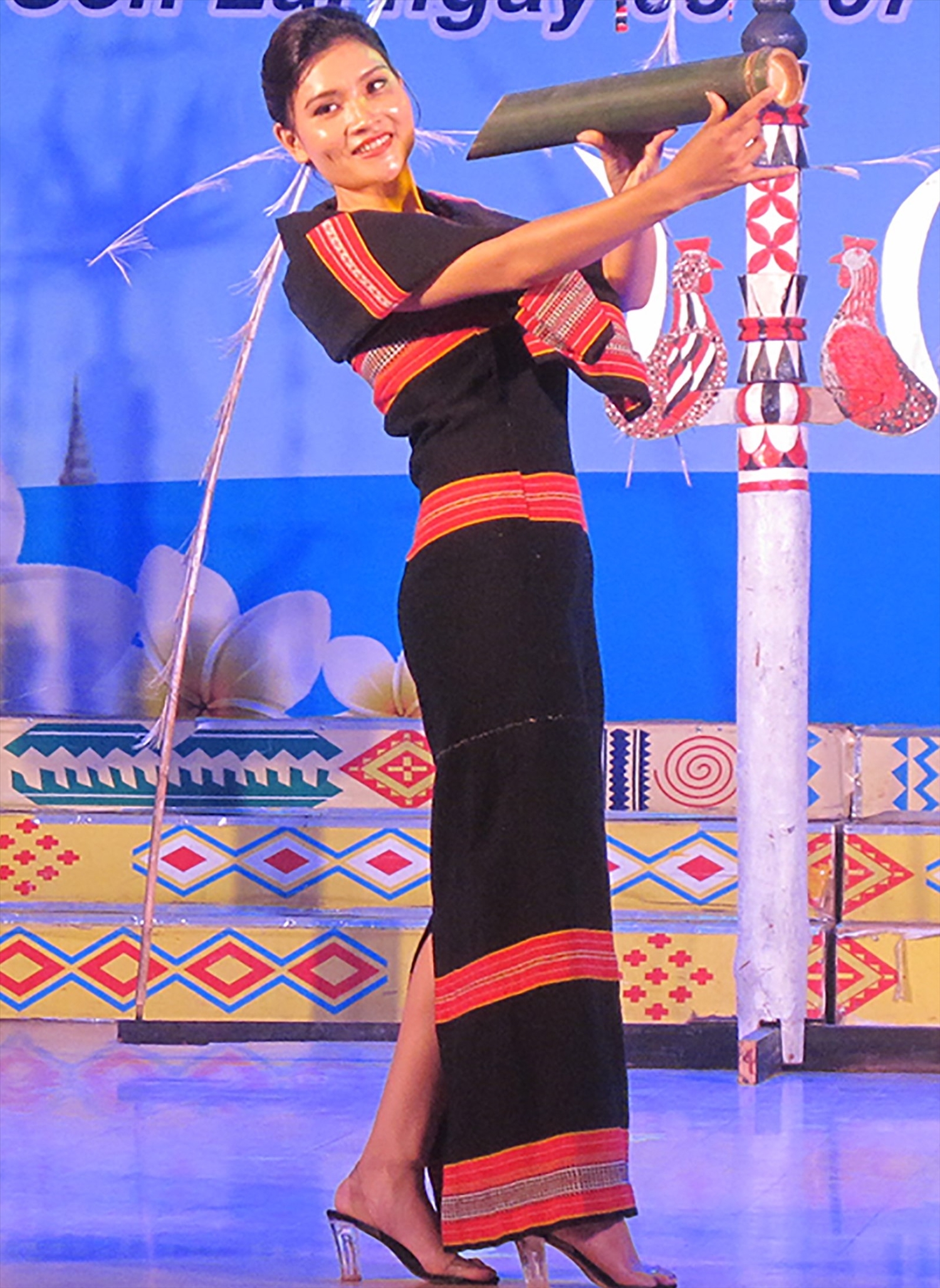 Xà cạp giúp tăng thêm vẻ đẹp nữ tính của bộ trang phục truyền thống của người Giẻ Triêng (nhóm địa phương Bh’noong ở Quảng Nam)