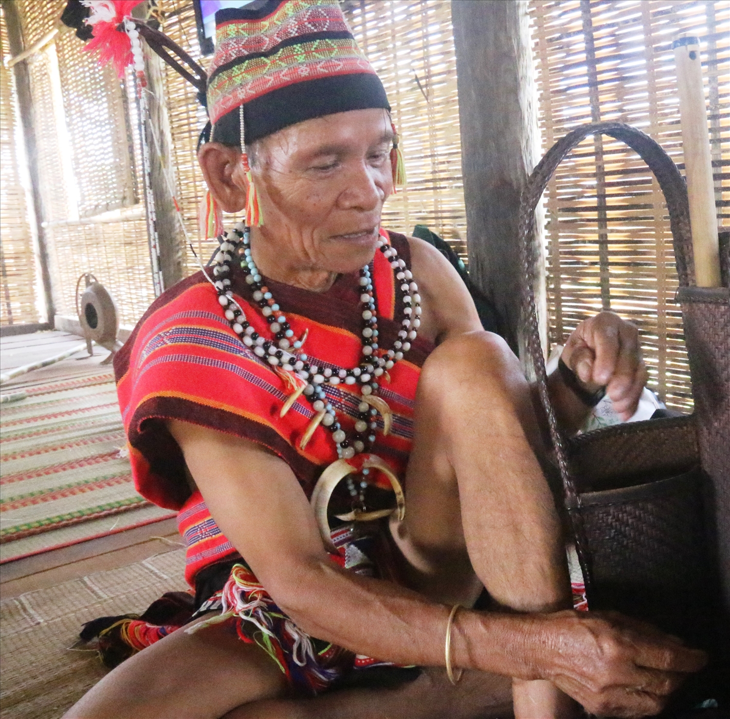 Già làng dân tộc Giẻ Triêng thường có nhiều bộ trang sức để đeo khi thực hiện các nghi lễ văn hóa